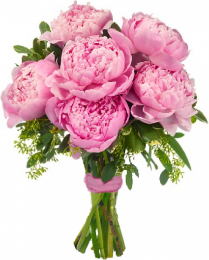 Пион - этот великолепный цветок, который с давних времен считается символом любви и красоты, особо почитается в Китае, и ценится жителями Поднебесной не  только за красоту и за свои лекарственные свойства, но ещё и за свои чудесные свойства: считается, что он способен оберегать от злых духов и от болезней. Букет из трепетных розовых пионов и зелени в подарок - это пожелание любви, благополучия, здоровья и счастья.